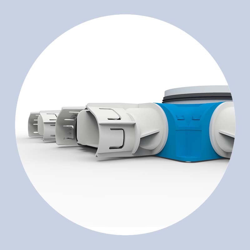 Het Uniflexplus+ luchtverdeelsysteem is ontworpen om het aanleggen van ventilatie zo snel en eenvoudig mogelijk te maken. De flexibele luchtslangen zijn eenvoudig op maat te snijden met het speciaal ontworpen afkortmes en kunnen tijdens de installatie nog makkelijk verlegd worden. Uniflexplus+ excelleert in gebruiksgemak. Met slecht een beperkt aantal componenten die eenvoudig in elkaar klikken kom je tot een luchtdicht luchtverdeelsysteem. Je hebt geen parkers of lijm nodig. Zo bespaar je kostbare installatietijd.
