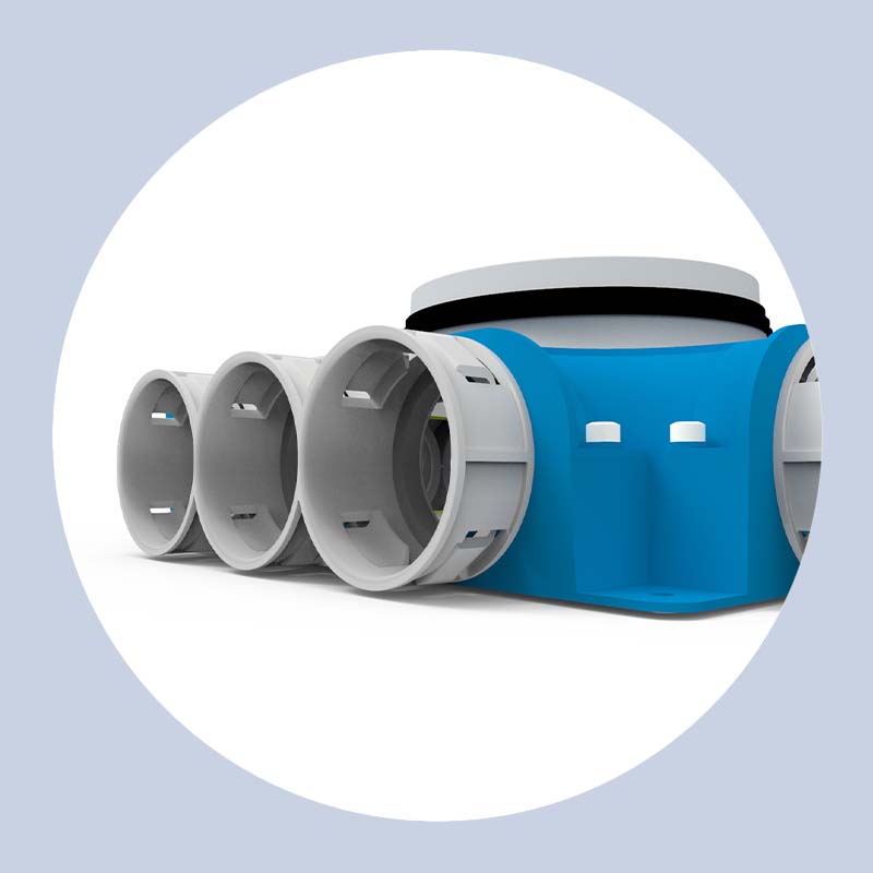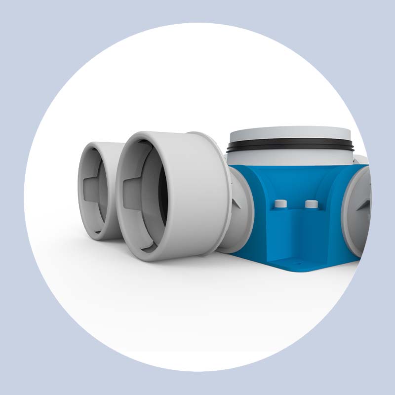 Verkrijgbaar in 1xØ90mm en 2xØ90mm. Vaak toegepast bij de nieuwbouw van huizen en gestapelde woningbouw.