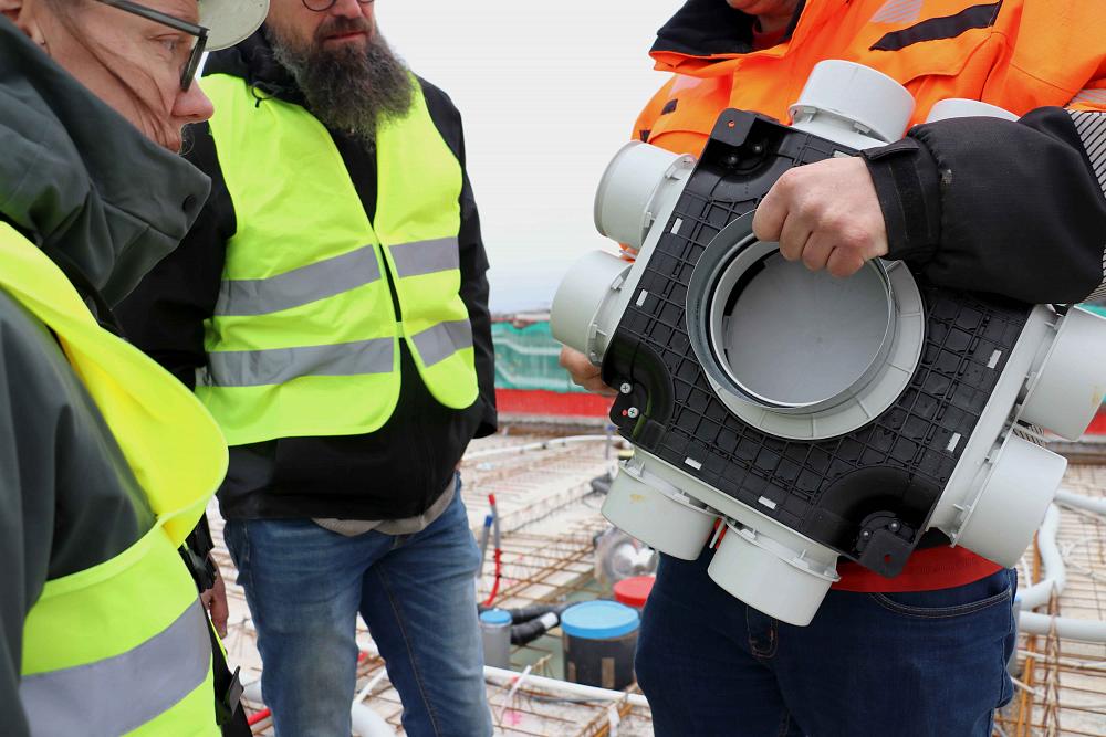 Ventilair leverde alle benodigde componenten op basis van eigen MEP-content, waardoor ze direct in het ontwerp zijn geïntegreerd. Dankzij GPS-markering zijn onderdelen digitaal herkenbaar en tijdens de bouw visueel te controleren. Leveringen van het Uniflexplus+ luchtverdeelsysteem vonden just-in-time plaats, afgestemd op de voortgang per verdieping – deels rechtstreeks op de bouw, deels via de prefablocatie van Hanab. Verlenghulzen voor ventielcollectoren zijn vooraf op maat gezaagd voor een snelle en foutloze montage.